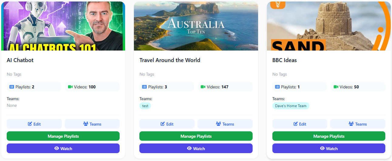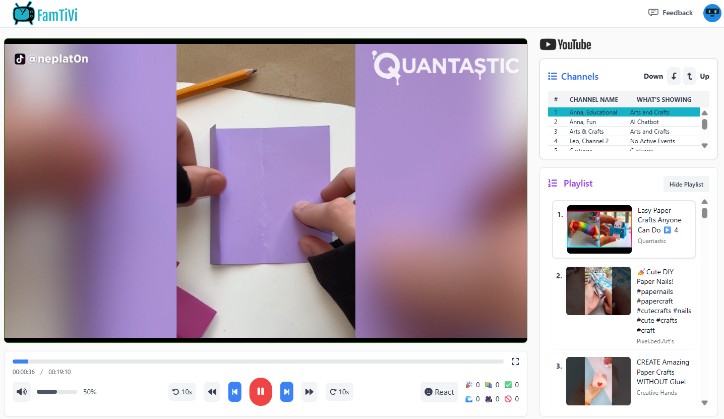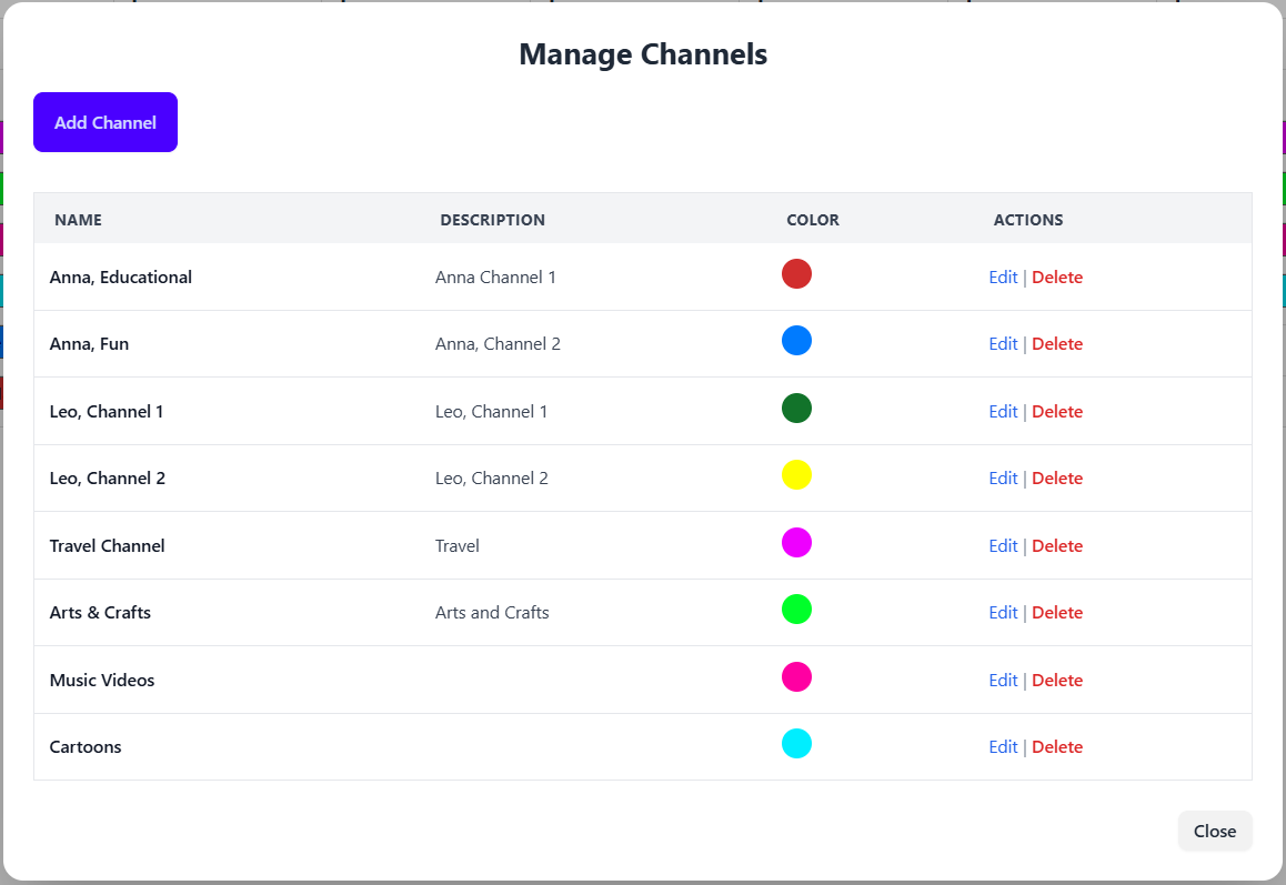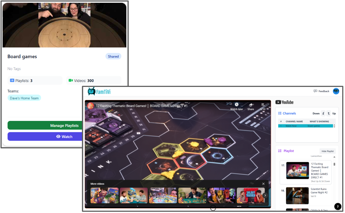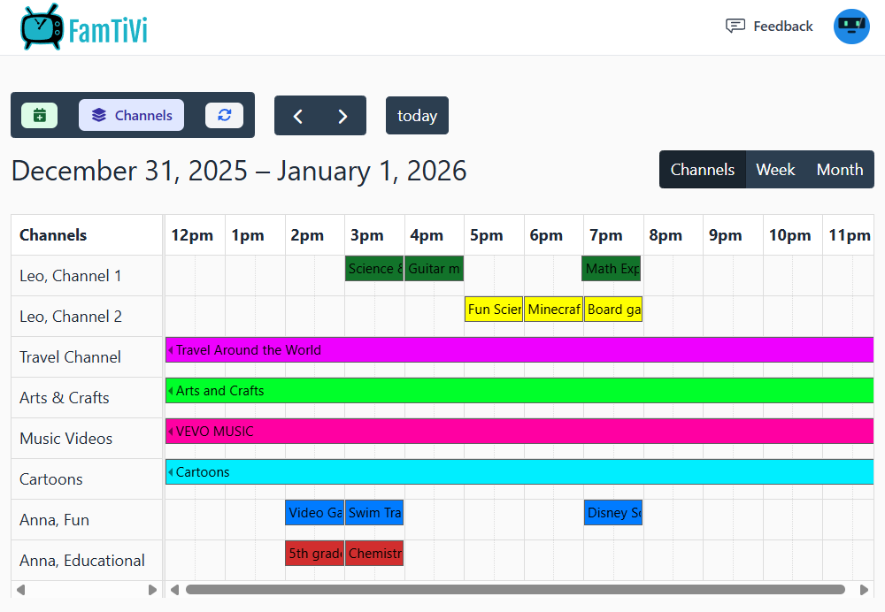 Just like any TV schedule, FamTiVi has the concept of channels. You can create your own "Science Channel" or "Discover Channel" or "Dave's Channel". The idea is the name of the channel provides an expectation for what content is scheduled. In our mobile apps, users can change the channel up and down to find content they want to watch.