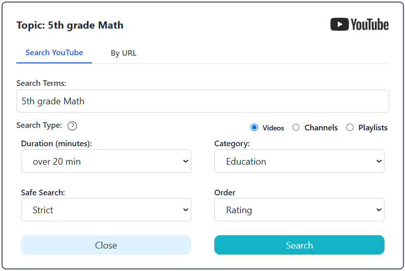 We built a custom YouTube search interface that is built for finding safe content and quickly building playlists in just seconds. It has options to link to existing YouTube Channels, creators, as well as YouTube Playlists.