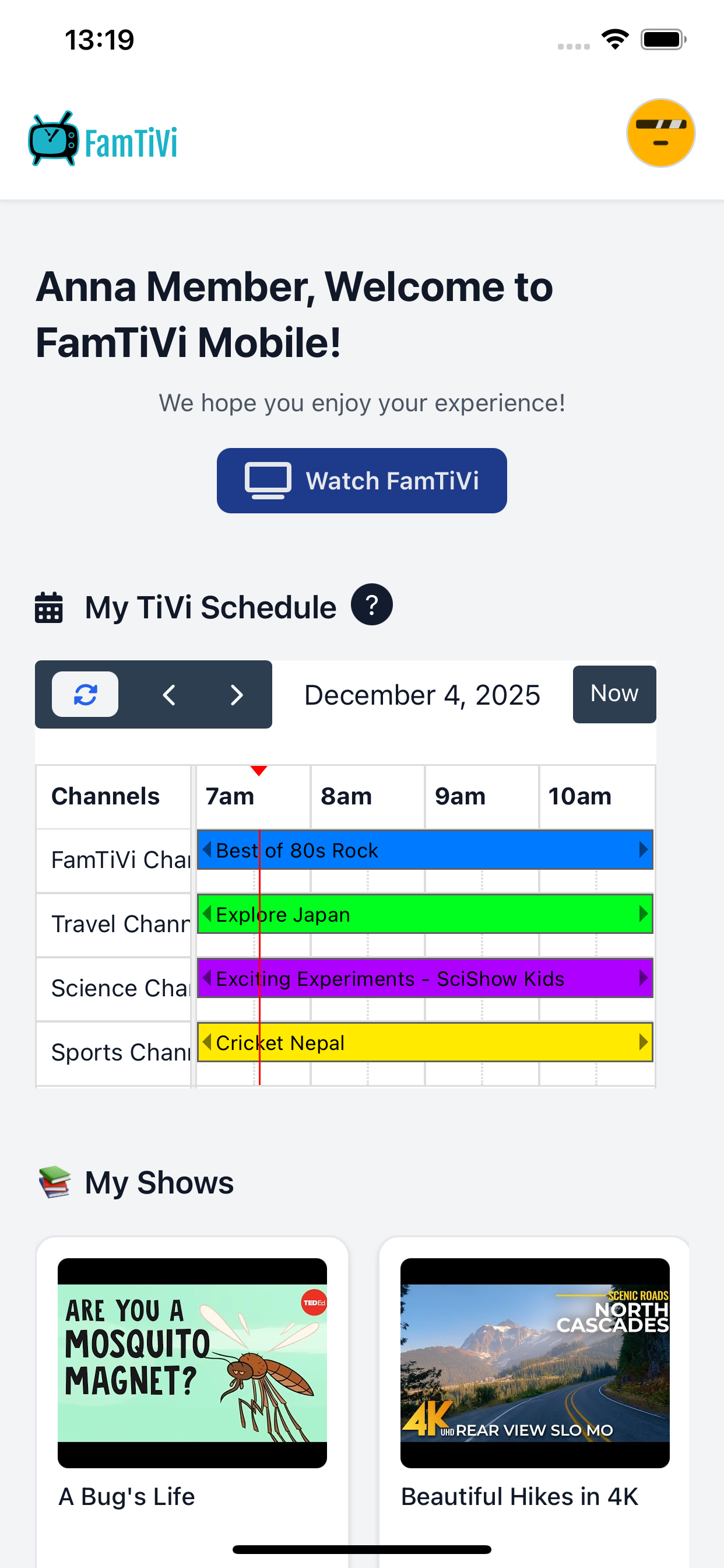 FamTiVi is built to make family-friendly video time simple, organized, and distraction-free. While our web app is the powerhouse where you can manage members, teams, topics, schedules, and all configurations, we know that most members—especially kids and families—just want a clean, focused way to watch their Tivi schedules.